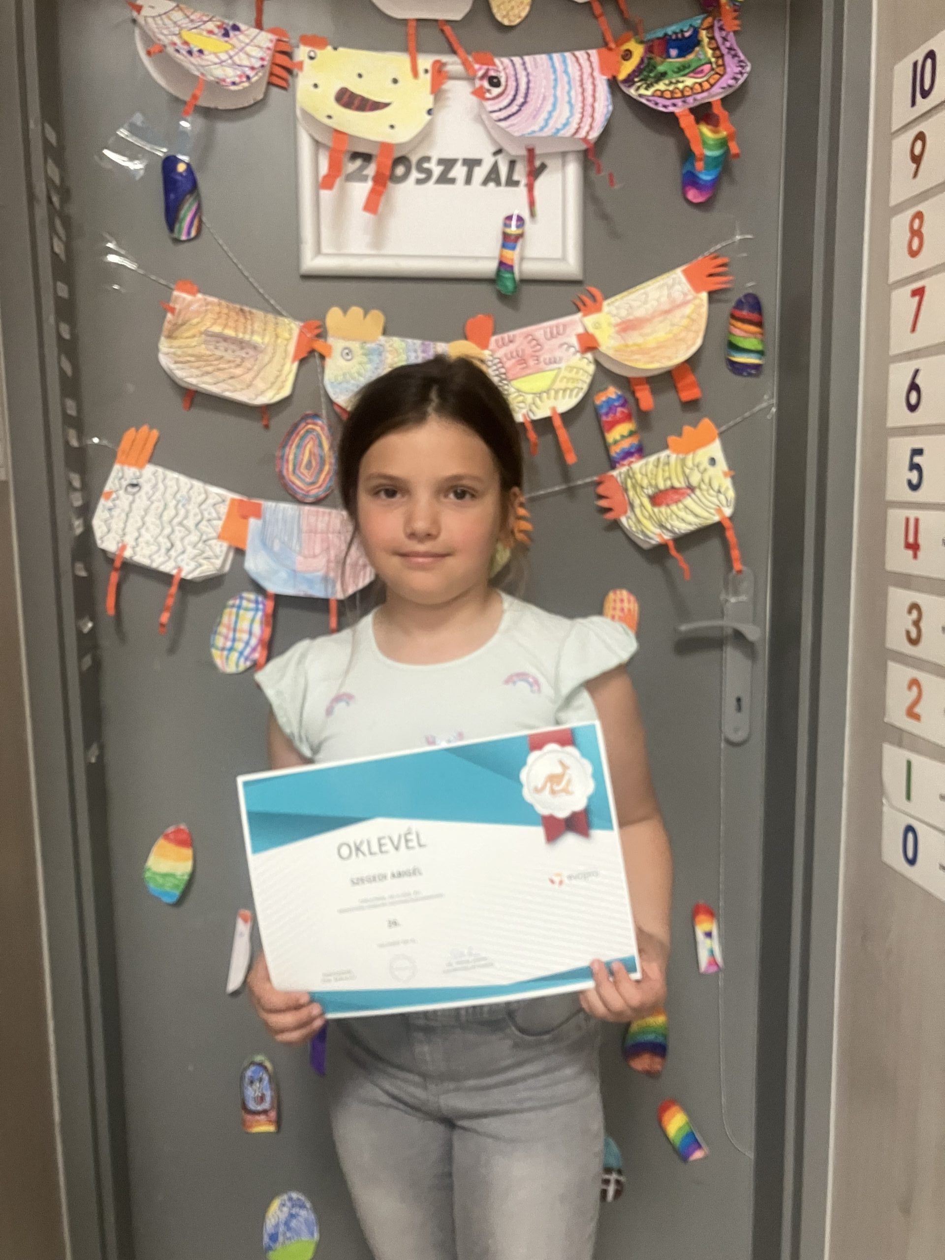 Iskolánk második osztályos tanulója, Szegedi Abigél a Nemzetközi Kenguru Matematika Versenyen Pest megyében 4., országos szinten pedig a 26. helyezést érte el. Felkészítő tanára: Bártfai-Kertész Barbara.